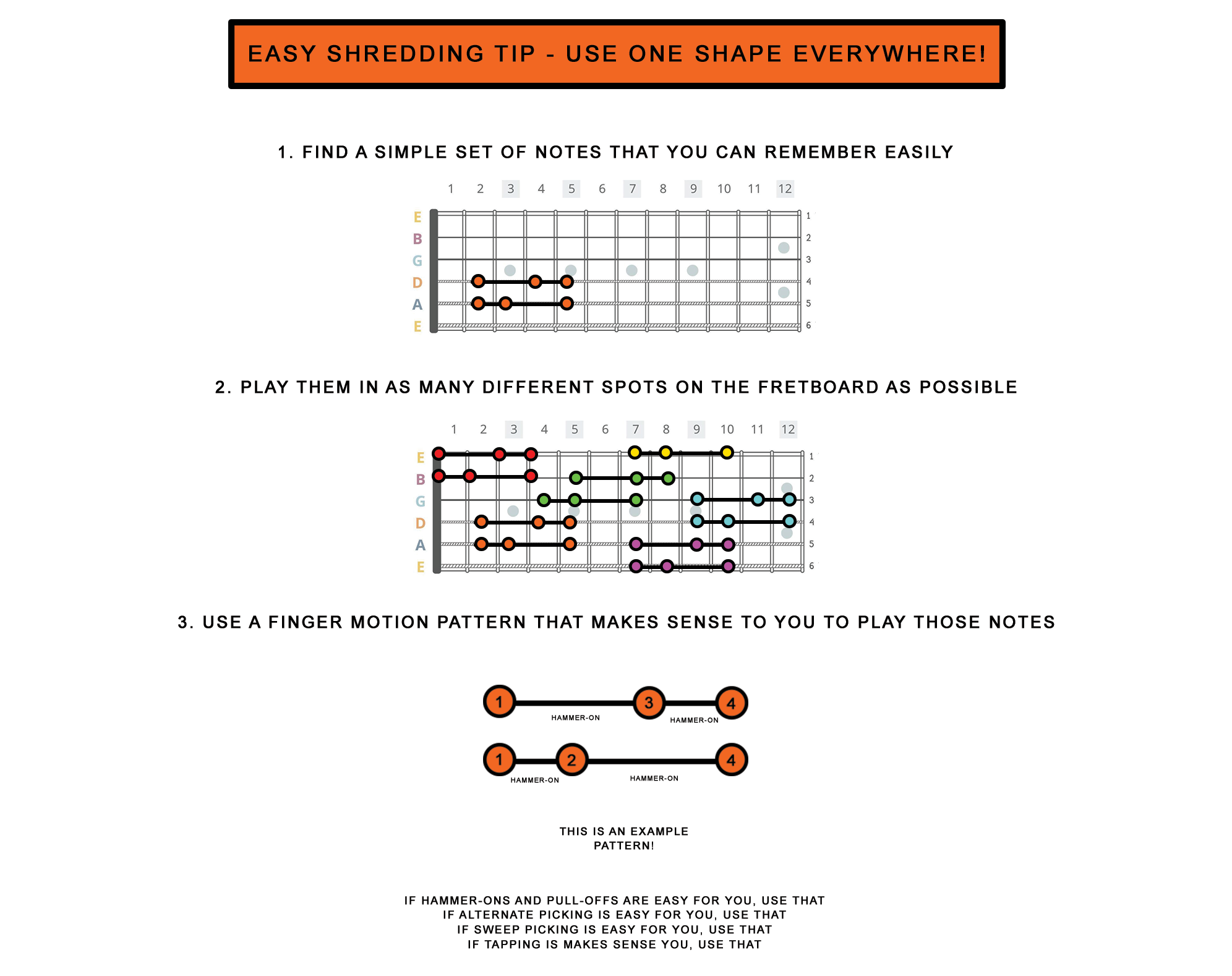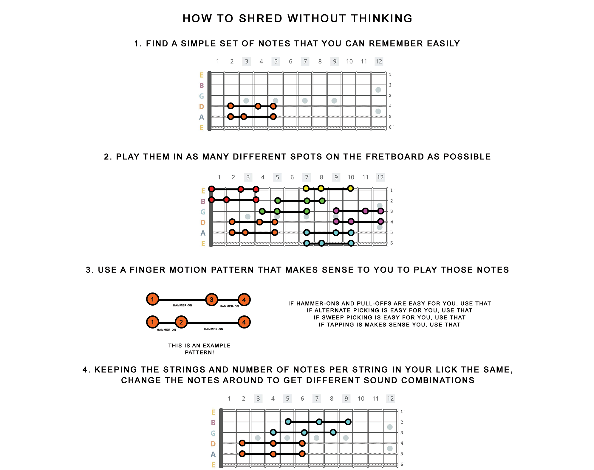 Aim to practice each of these shred licks - either one per week, or one per day.