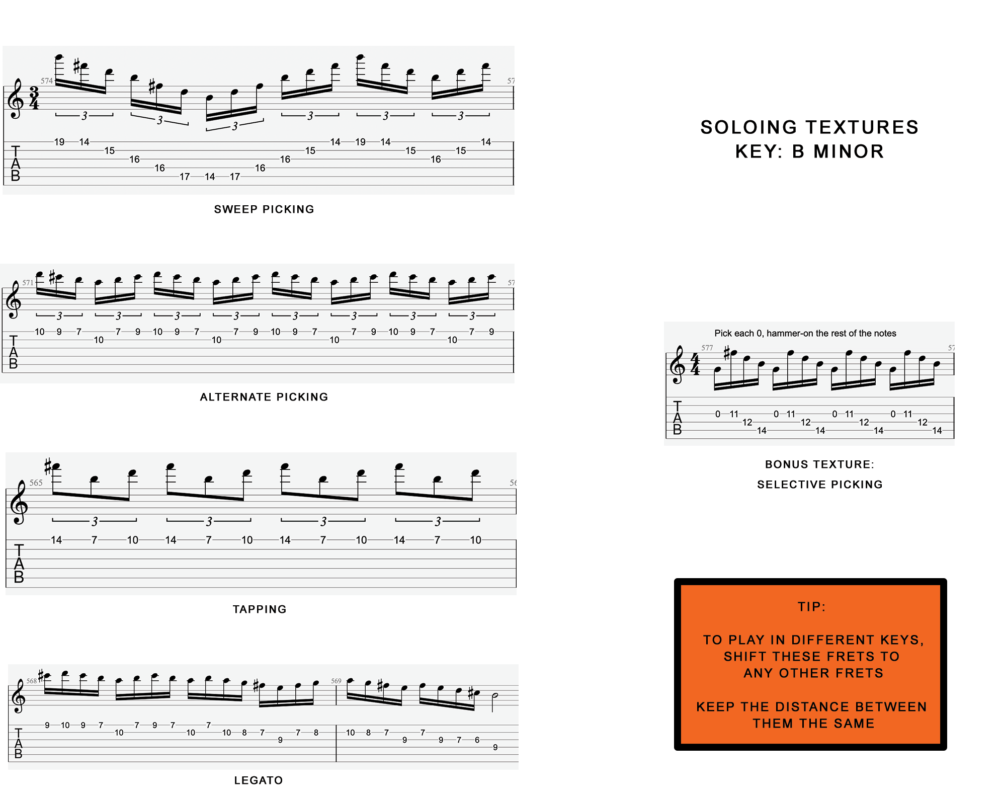 Use the tips in the image above to guide you and give you ideas on how to evolve your solo throughout the backing track